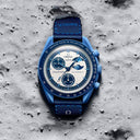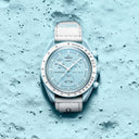 Referencing the vast desert sands that cover more than a fifth of the Earth's surface, this chronograph features a light gray-beige palette. A unique detail on the subdials pays homage to the Speedmaster Alaska II and III projects, as well as the first watch on the Moon.