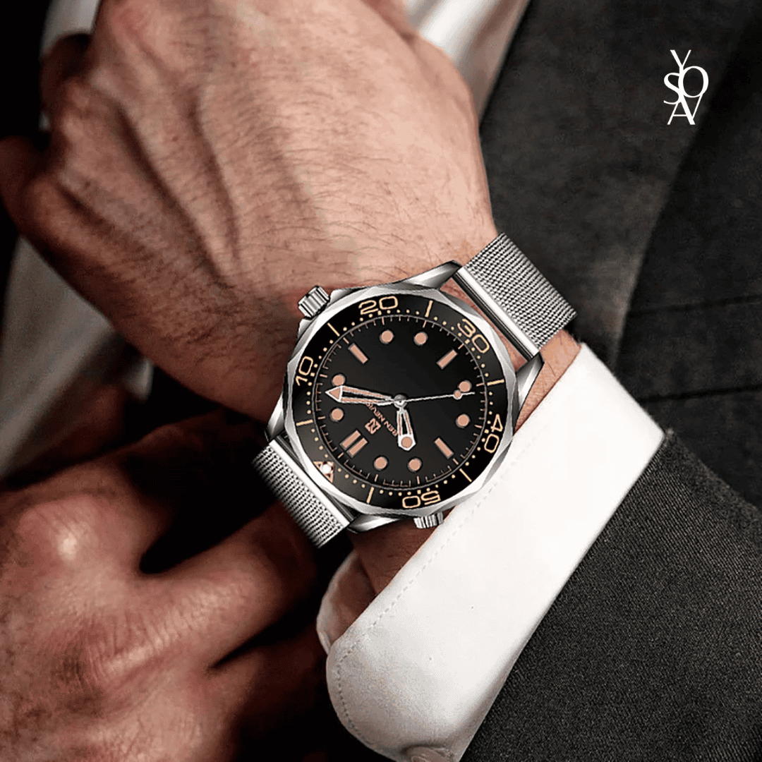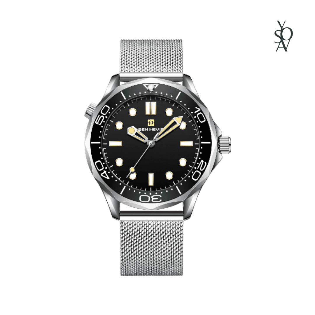Experience sophistication and style with the Bahamas watch, a remarkable blend of elegance and functionality. Featuring a sleek black dial with luminous markers, it ensures easy readability even in low light. The mesh bracelet adds a modern flair, making it a perfect accessory for any occasion. Dive into luxury and enjoy precision timekeeping and timeless design.