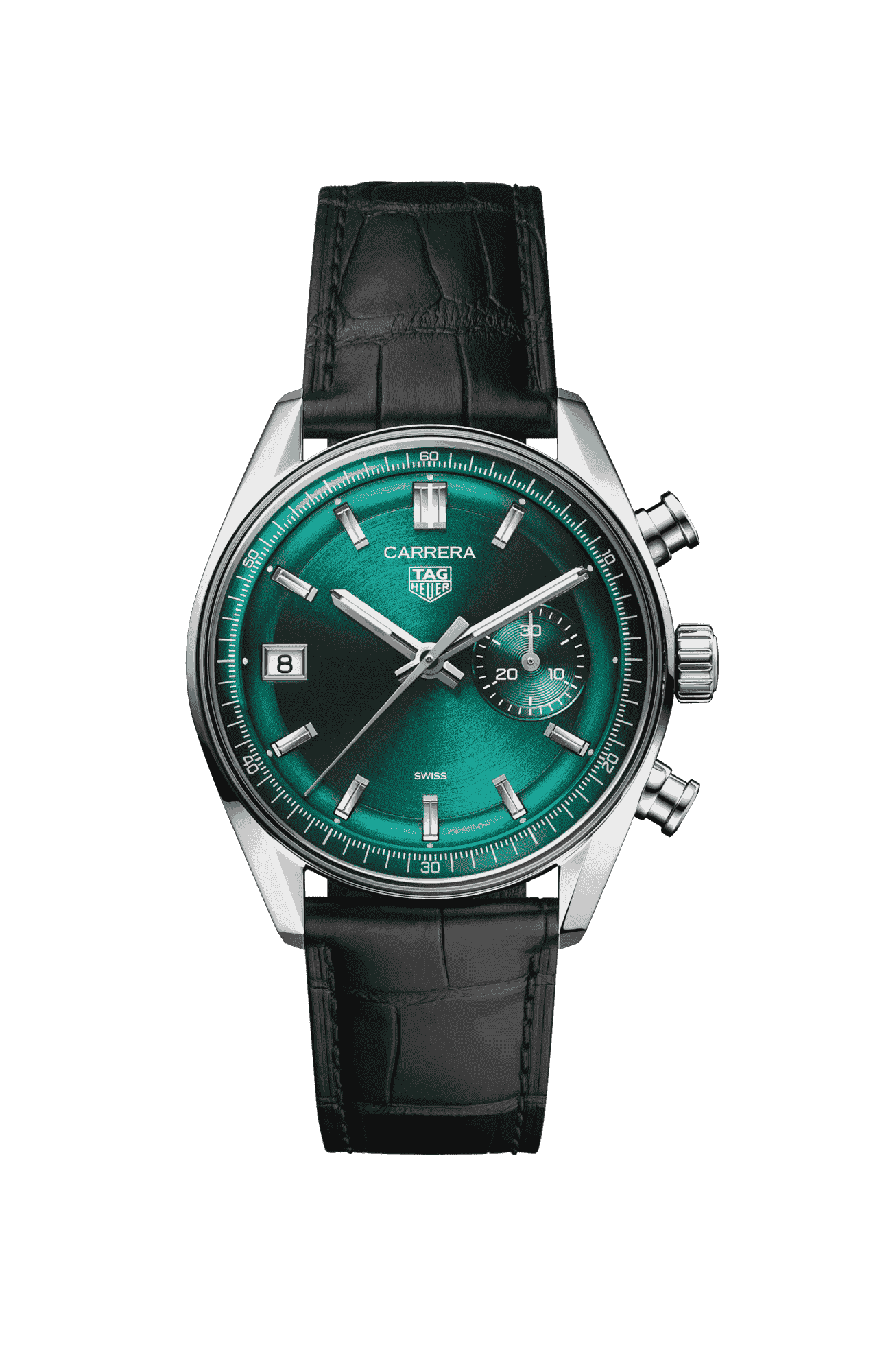 With its 39mm silhouette, this TAG Heuer Carrera timepiece Chronograph captures the essence of femininity and racing spirit. Featuring a soft pink dial set against the brilliance of diamonds, it encapsulates a luxurious, sporty aesthetic.