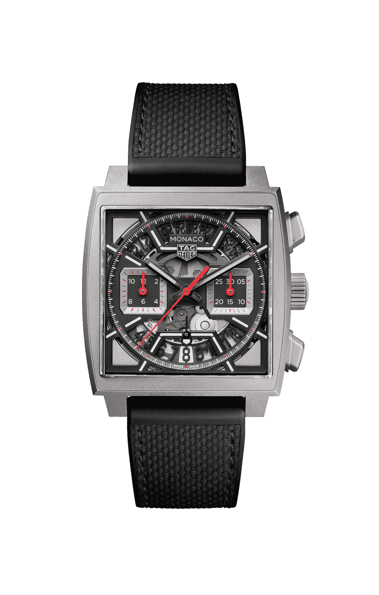 Inspired by the original Monaco blue dial, this TAG Heuer Monaco is an absolute technical gem. Integrating for the first time an intricately skeletonised dial showcasing bold colours, it is the quintessential square-shaped watchmaking icon.