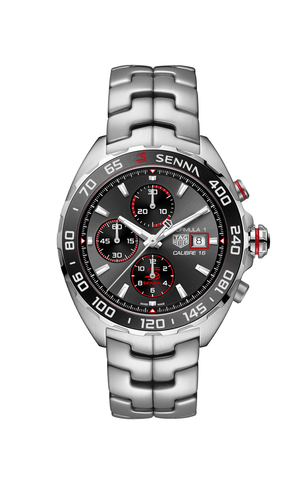 Inspired by the dominant style of race legend Ayrton Senna, this 44mm automatic chronograph is a Special Edition with Senna's original red watch colour as it continues to pay homage to the master of speed. The powerful automatic movement Calibre 16 equipped this new version with an even stronger design. A vibrant tribute to Ayrton Senna, an admired and adored legend for motor racing.
