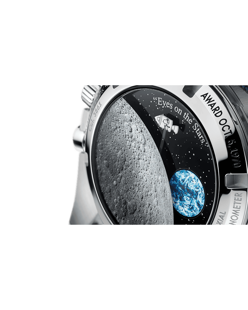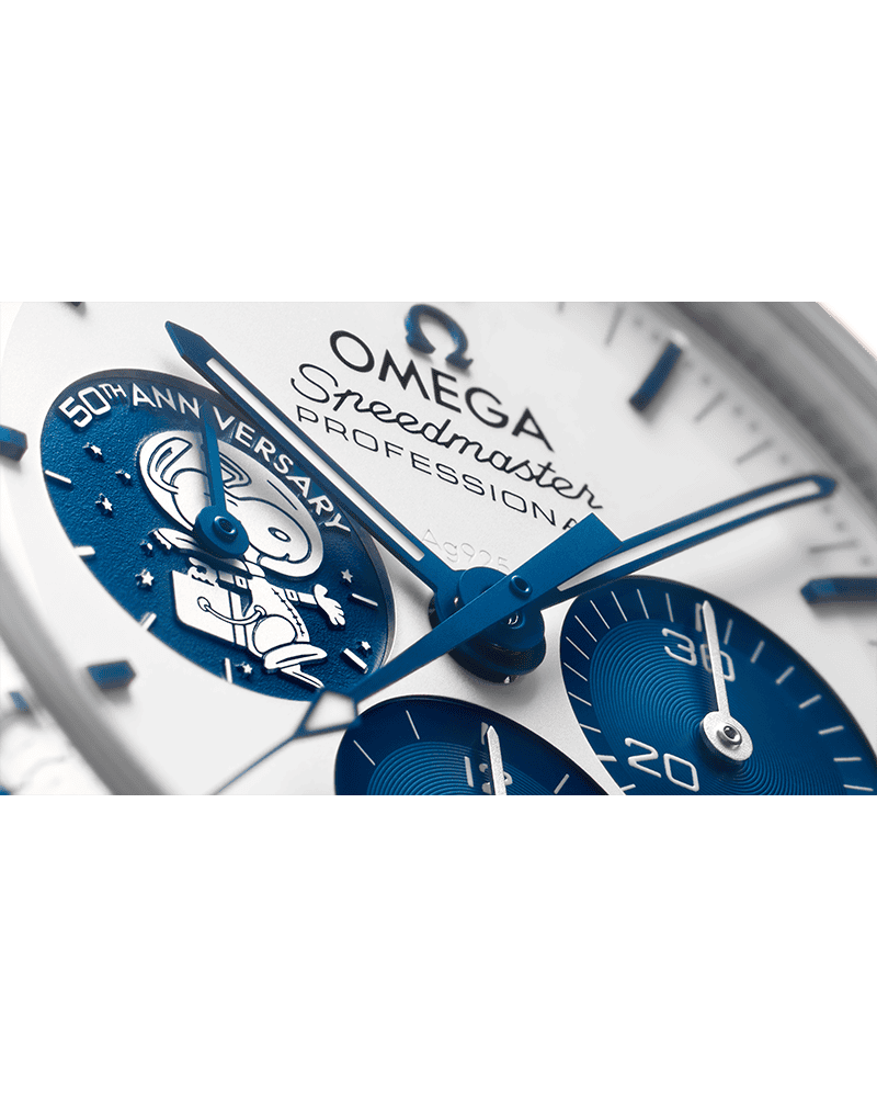Our attention to detail is evident in everything we do. The silver dial of our 50th anniversary “Silver Snoopy Award” watch is a shining example. With finely curved baton hands, angular hour markers and an embossed Snoopy counter at 9 o’clock, we’ve accomplished our mission of taking every component to the highest level of quality. This is our rigorous approach. This is OMEG precision.